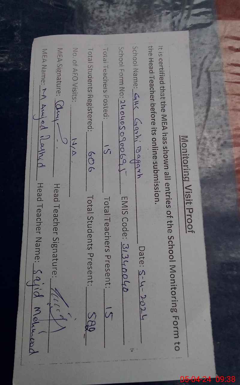 | EMIS Code: 31340040 | Name of School: GHS GHARI BHGER | |||