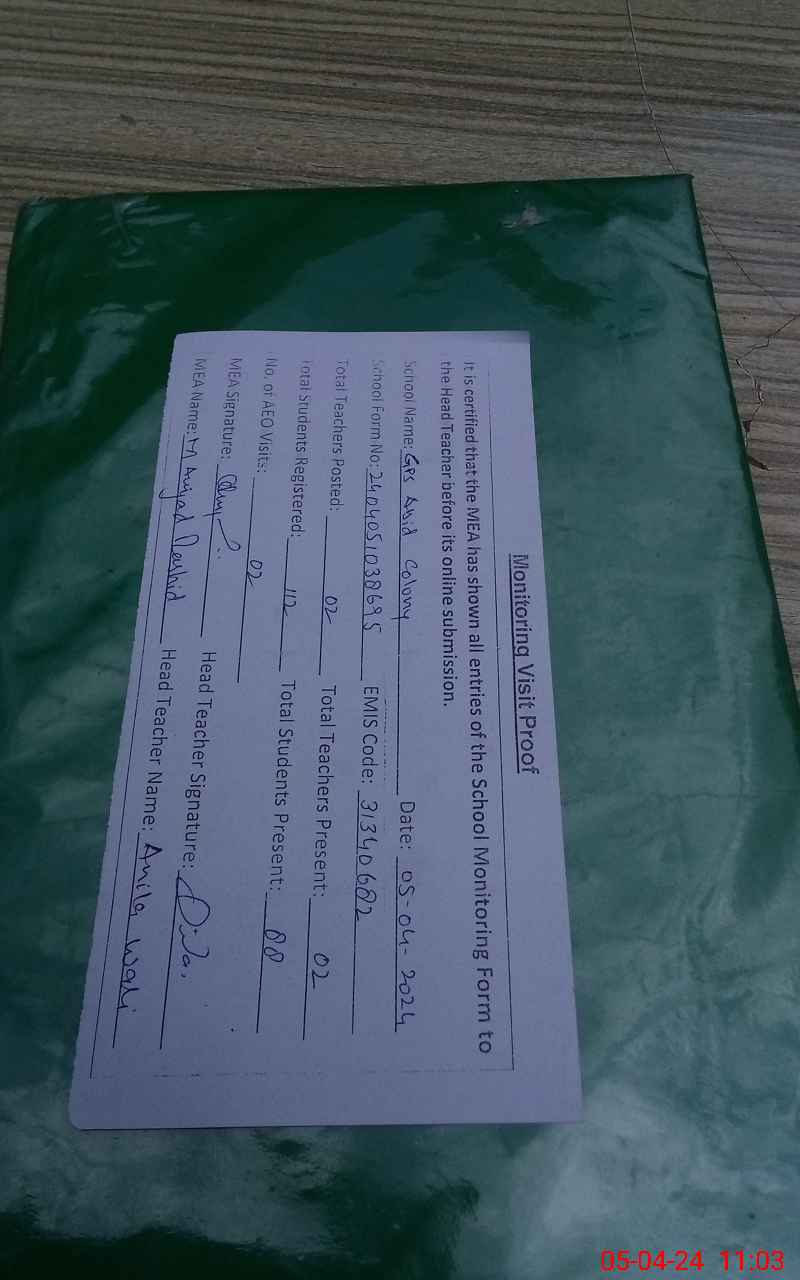 | EMIS Code: 31340682 | Name of School: GPS ABID COLONY | |||