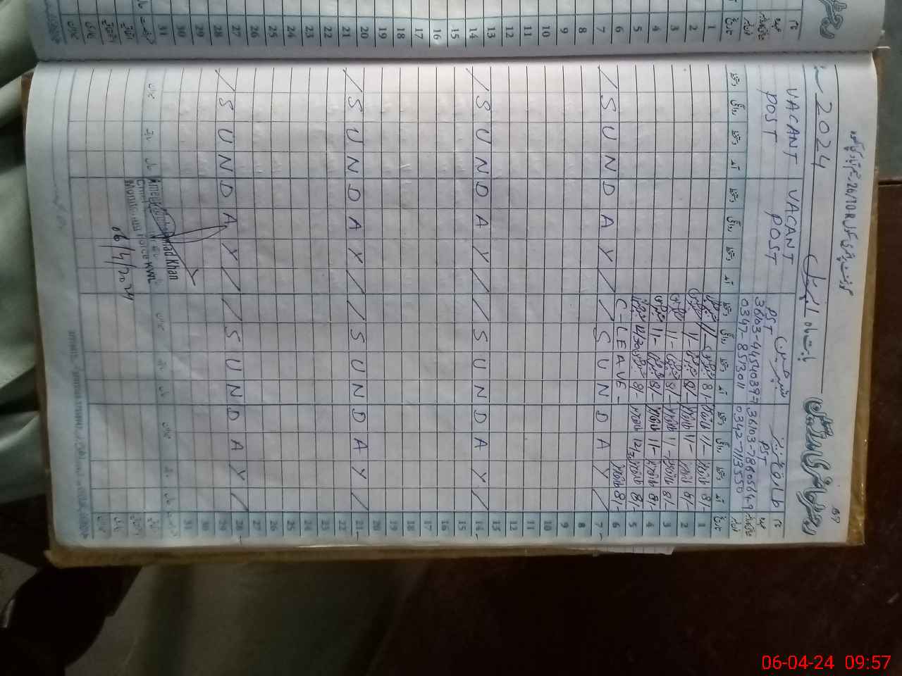 | CNIC | Full Name | Designation | R/C | Absence During Last Calender Month |