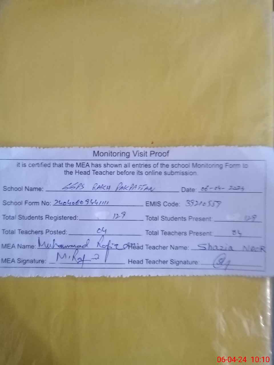 | EMIS Code: 39210559 | Name of School: GGPS RAKH PAKPATTAN | |||