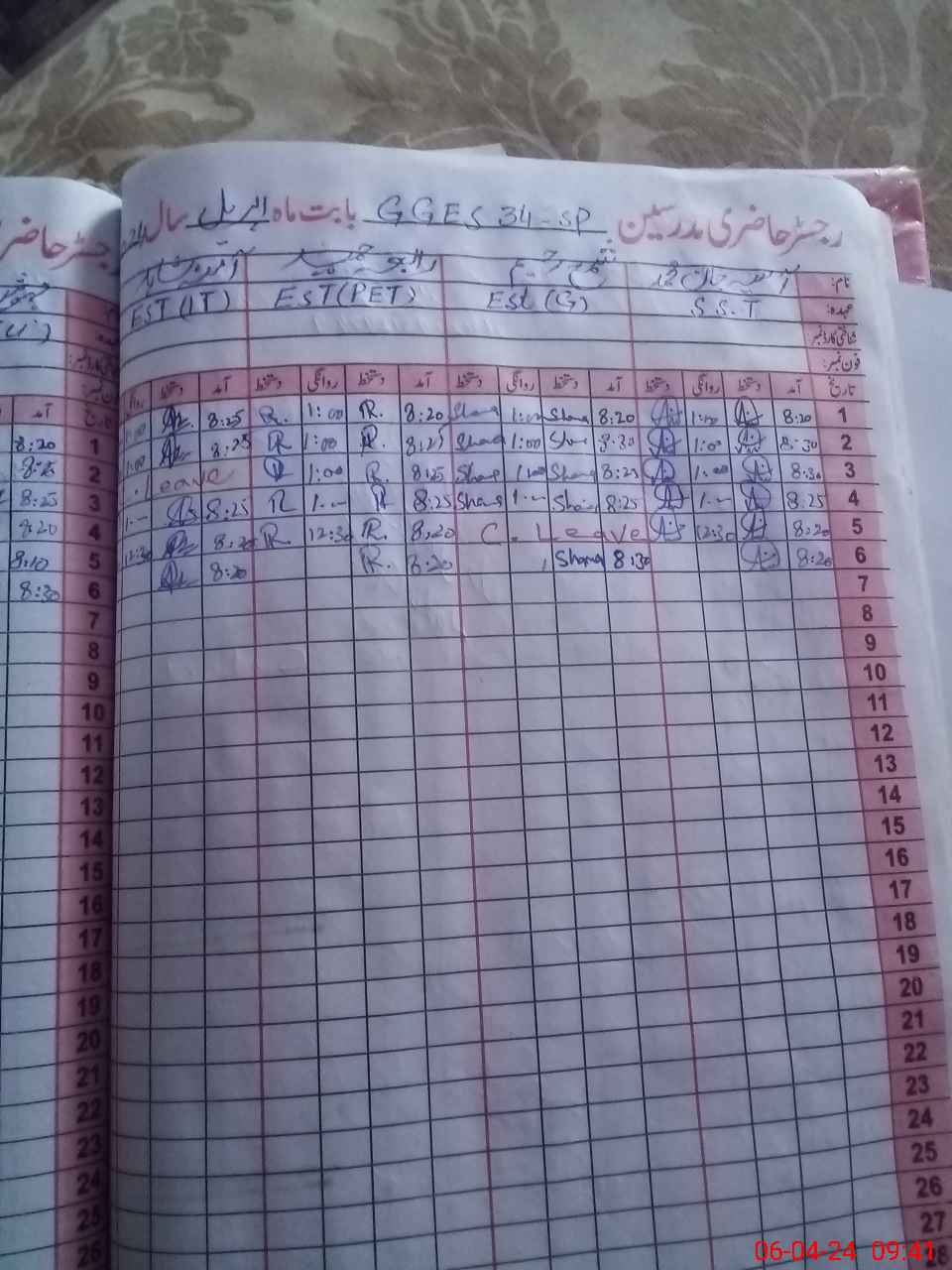| CNIC | Full Name | Designation | R/C | Absence During Last Calender Month |