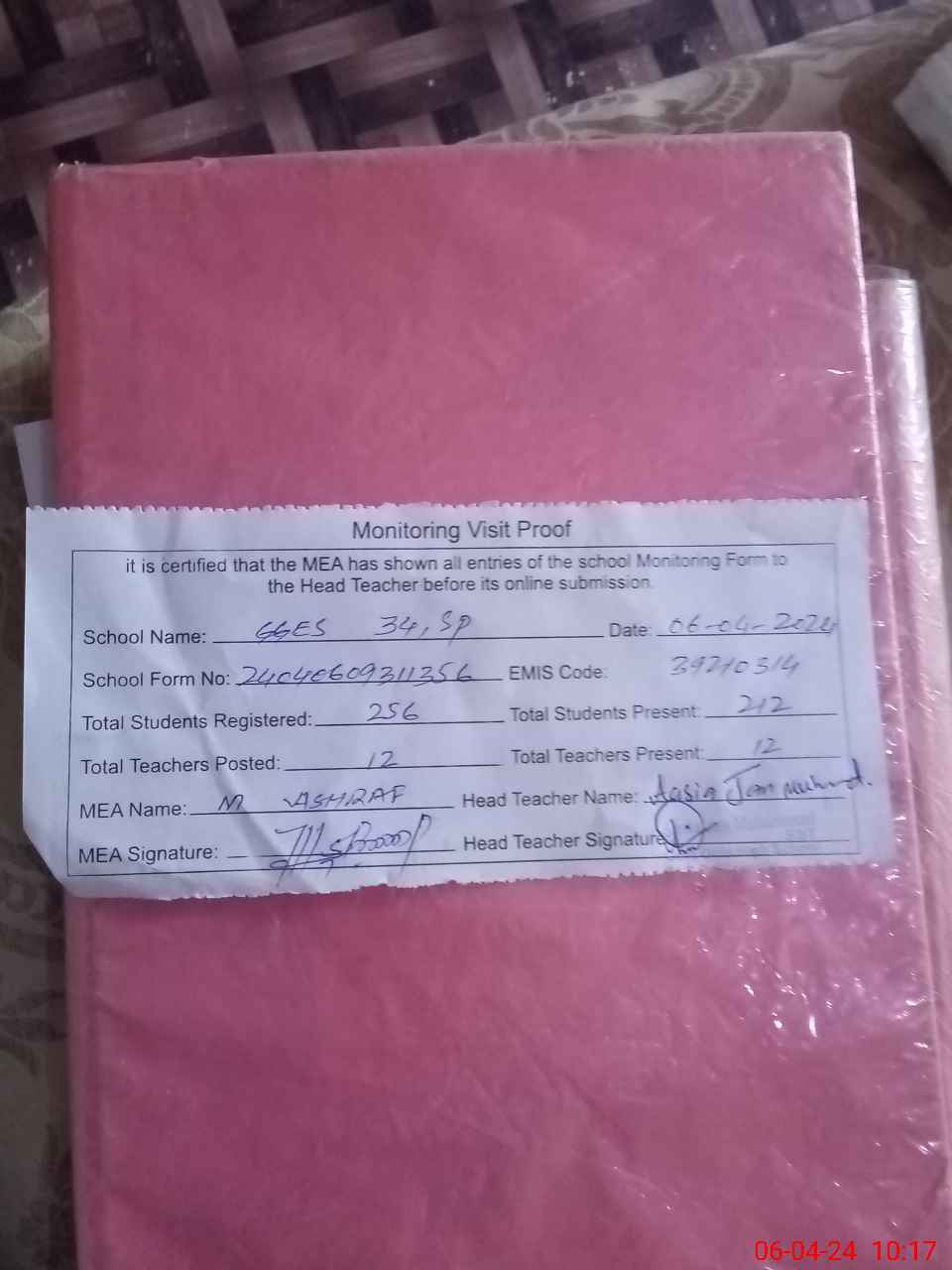 | Attendance Register | Head Teacher | MEA with School | Visit Proof |