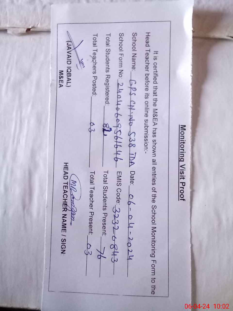 | EMIS Code: 32320843 | Name of School: GPS CHAK NO.538 TDA | |||