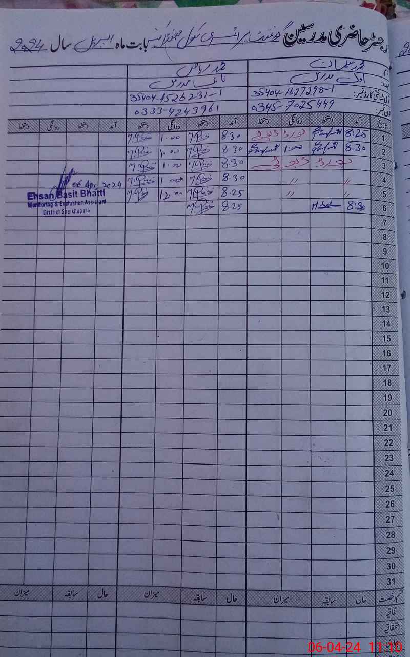 | Name: Aq**** Bi**** Designation: (School Headmaster's/Headmistress's) PSSP Phone/Cell Number: 03**** |