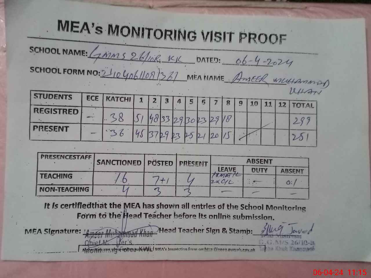 | EMIS Code: 36420121 | Name of School: GMMS 26/10-R, KACHA KHUH | |||