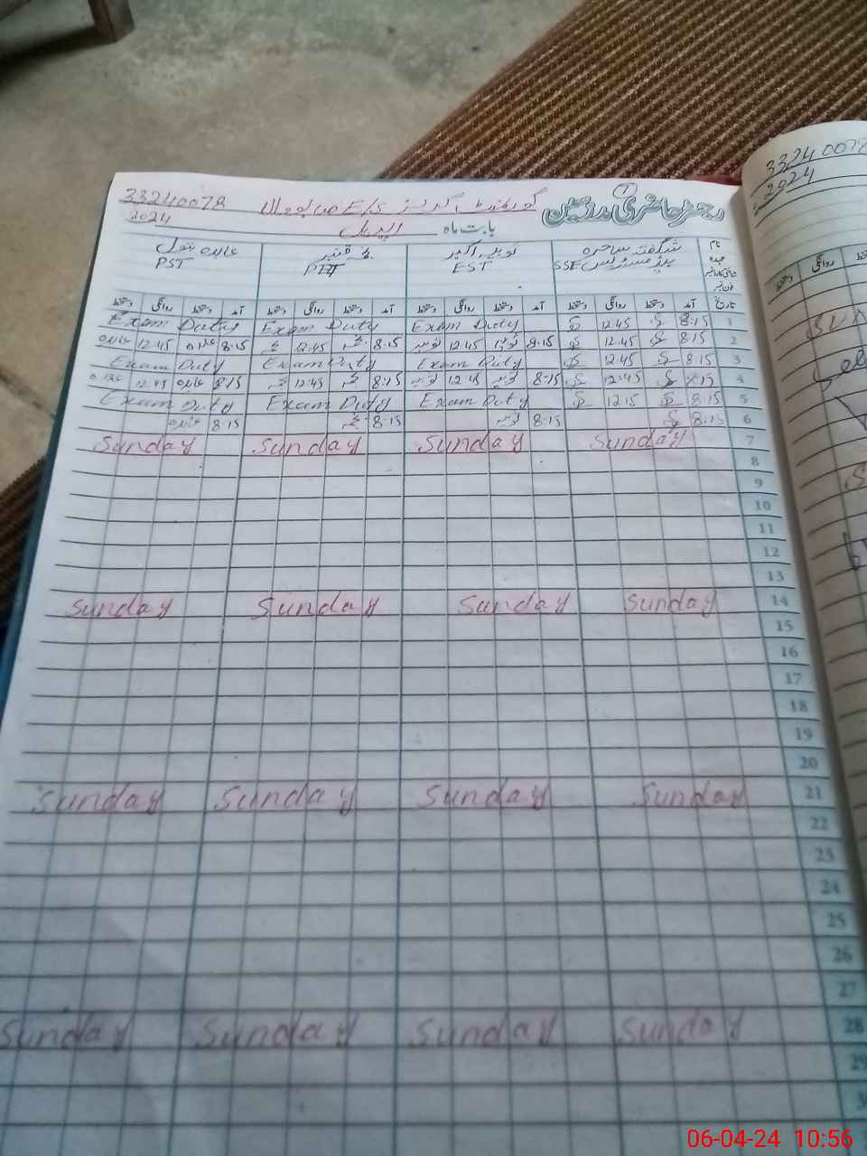 | Leave | Duty | Absent | Maternity | Medical | Ex- Pak |