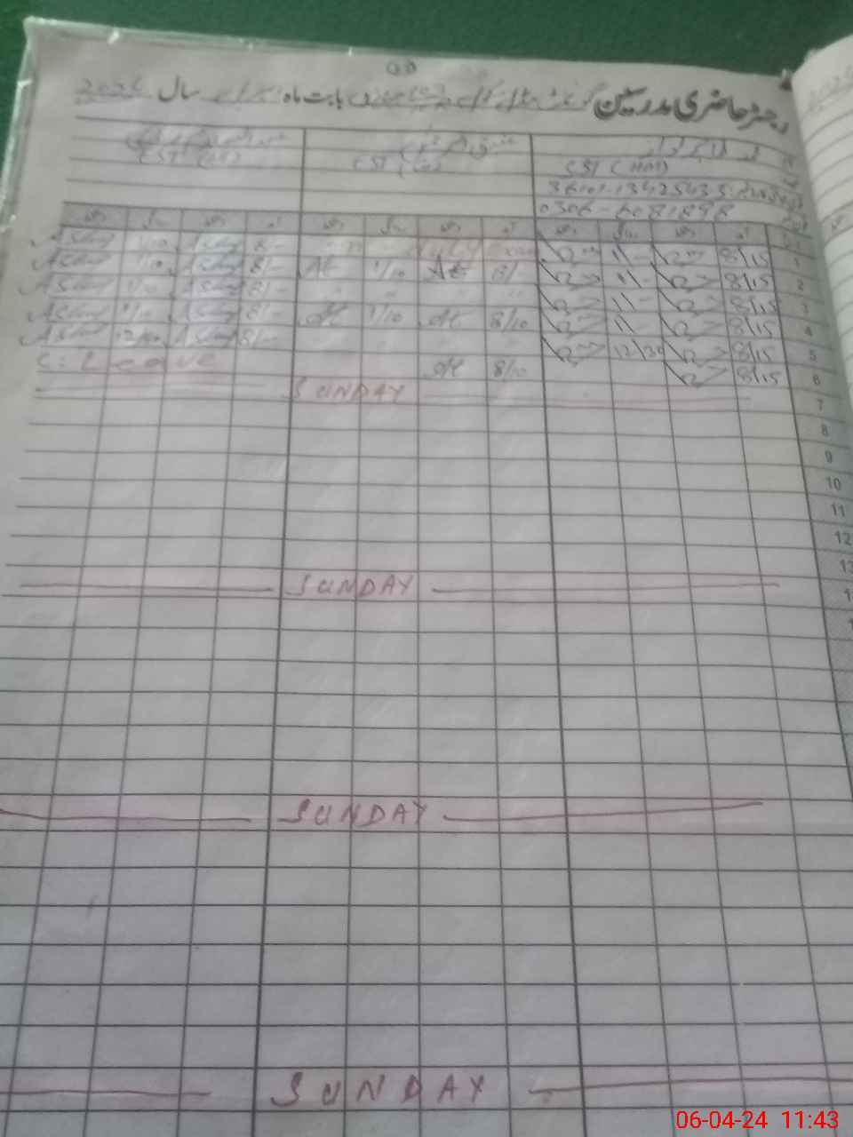 | CNIC | Full Name | Designation | R/C | Absence During Last Calender Month |