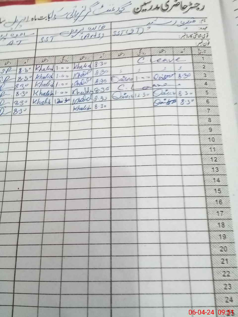 | Name: Qa**** Ra**** Designation: (School Headmaster's/Headmistress's) S.S.T.(SC) Phone/Cell Number: 03**** |