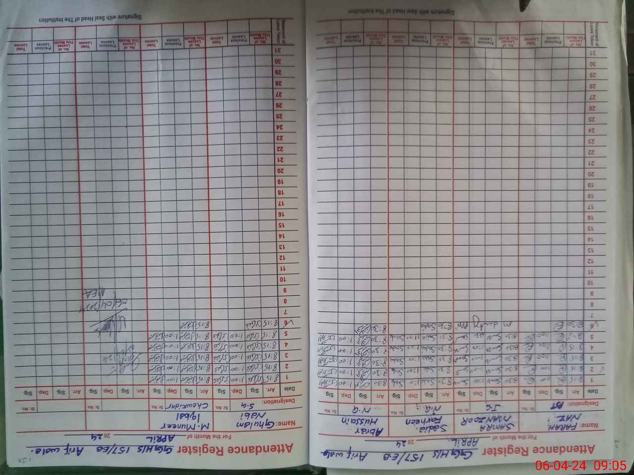 | CNIC | Full Name | Designation | R/C | Absence During Last Calender Month |