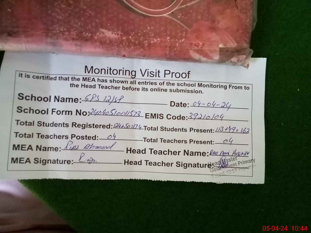 | EMIS Code: 39210104 | Name of School: GPS 12/SP P.O 8.S.P PAKPATTAN | |||