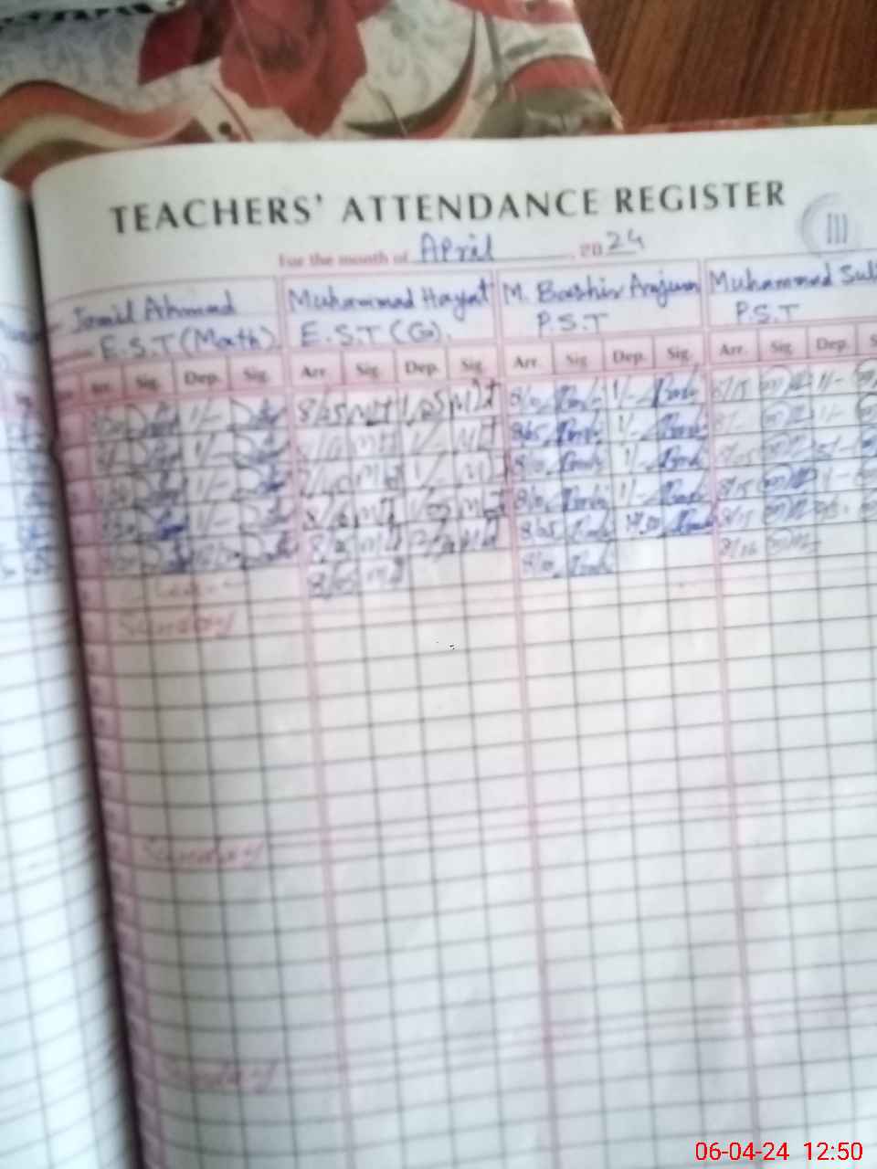 | Name: MU**** BA**** Designation: (School Headmaster's/Headmistress's) S.S.T. (Arts) Phone/Cell Number: 03**** |