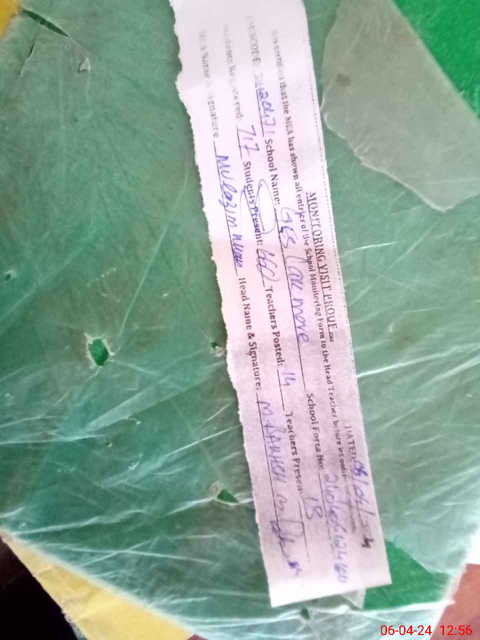 | Attendance Register | Head Teacher | MEA with School | Visit Proof |