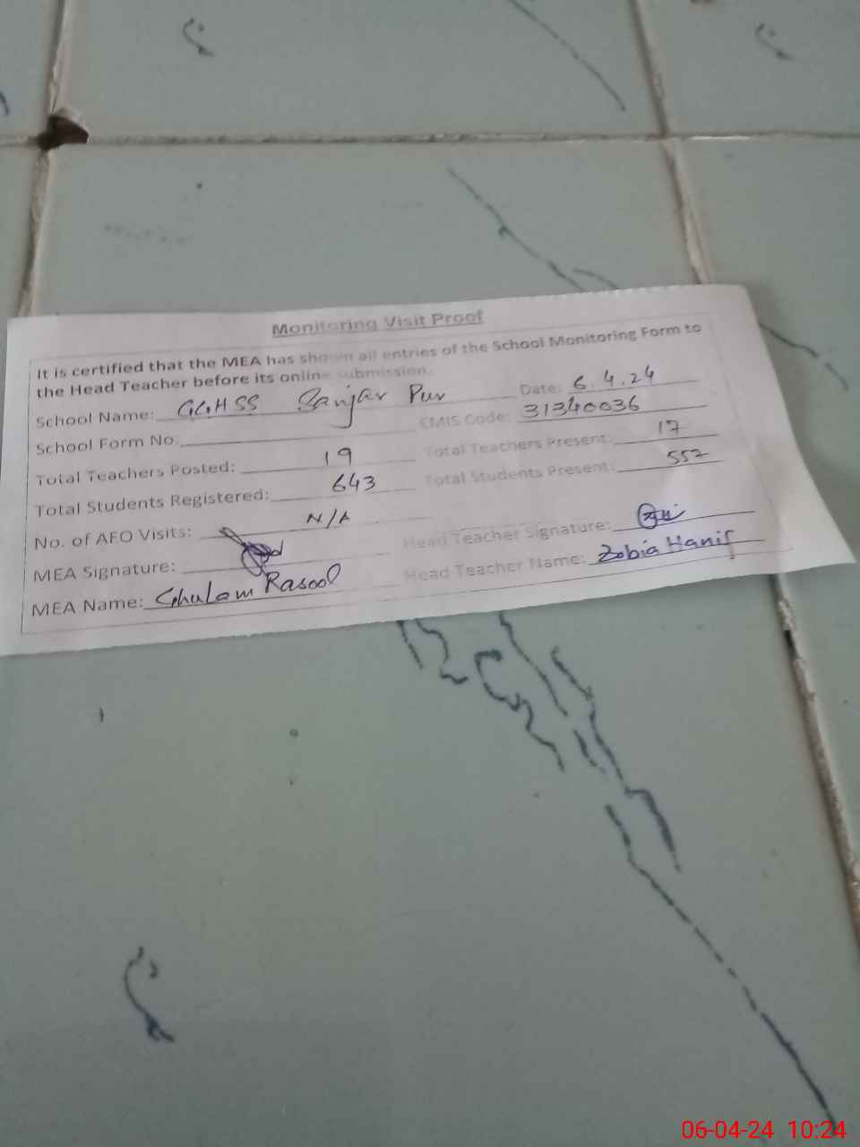| EMIS Code: 31340036 | Name of School: GGHSS SANJAR PUR | |||