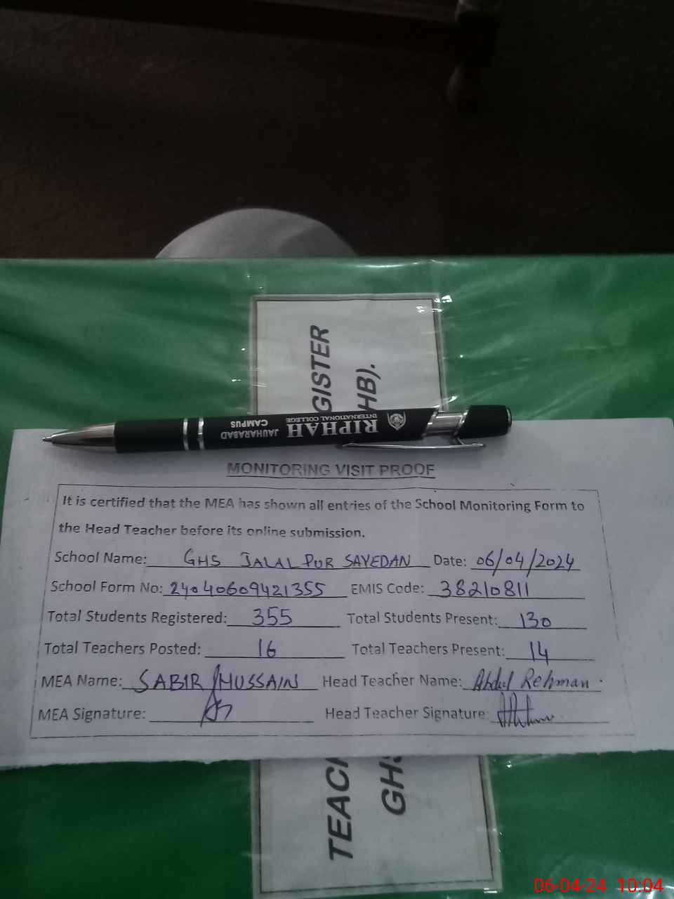 | EMIS Code: 38210811 | Name of School: GHS JALAL PUR SAYEDAN | |||