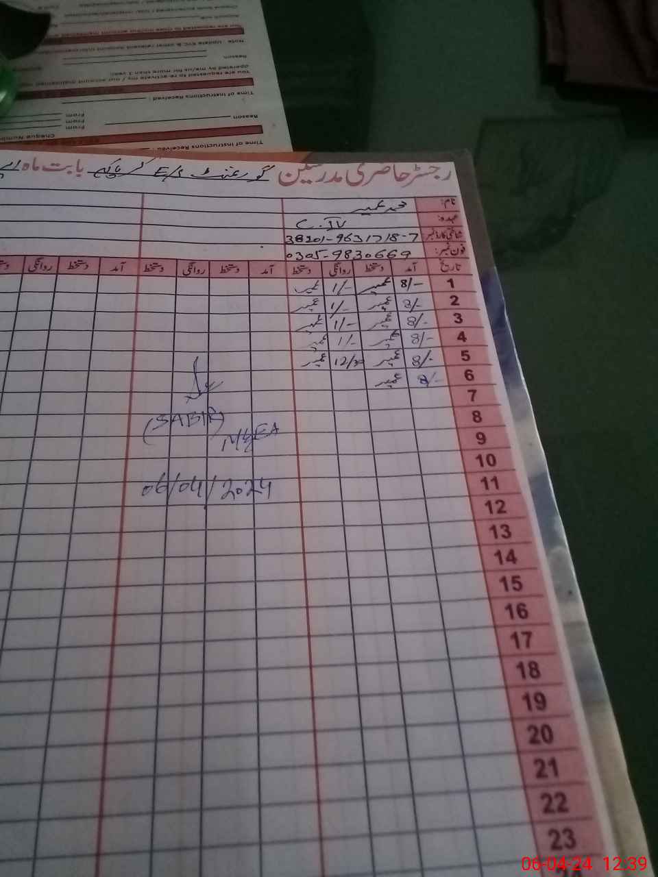 | Name: Uz**** Sa**** Designation: (School Headmaster's/Headmistress's) Est Incharge Phone/Cell Number: 03**** |