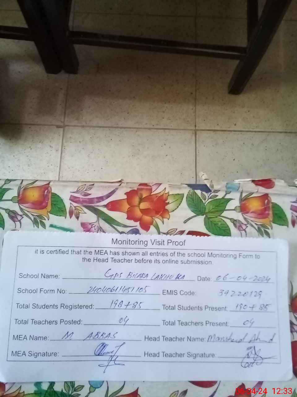 | EMIS Code: 39220129 | Name of School: GPS BALARA LAKHOKA | |||