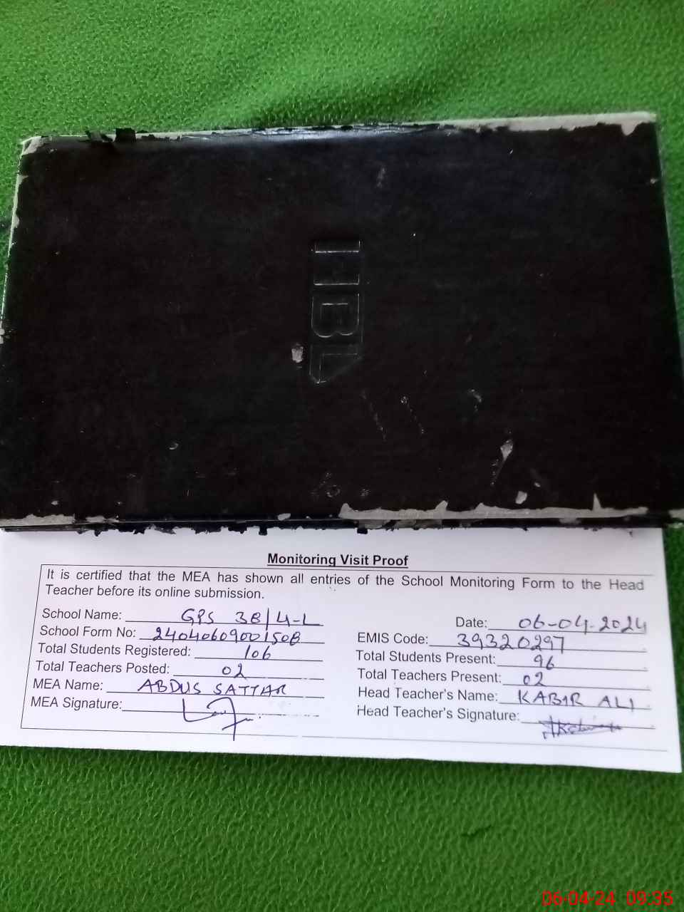 | Certified that this School was Inspected by the Undersigned MEA/DMO Today and the Information Stated Above is as Per Record. | |||||