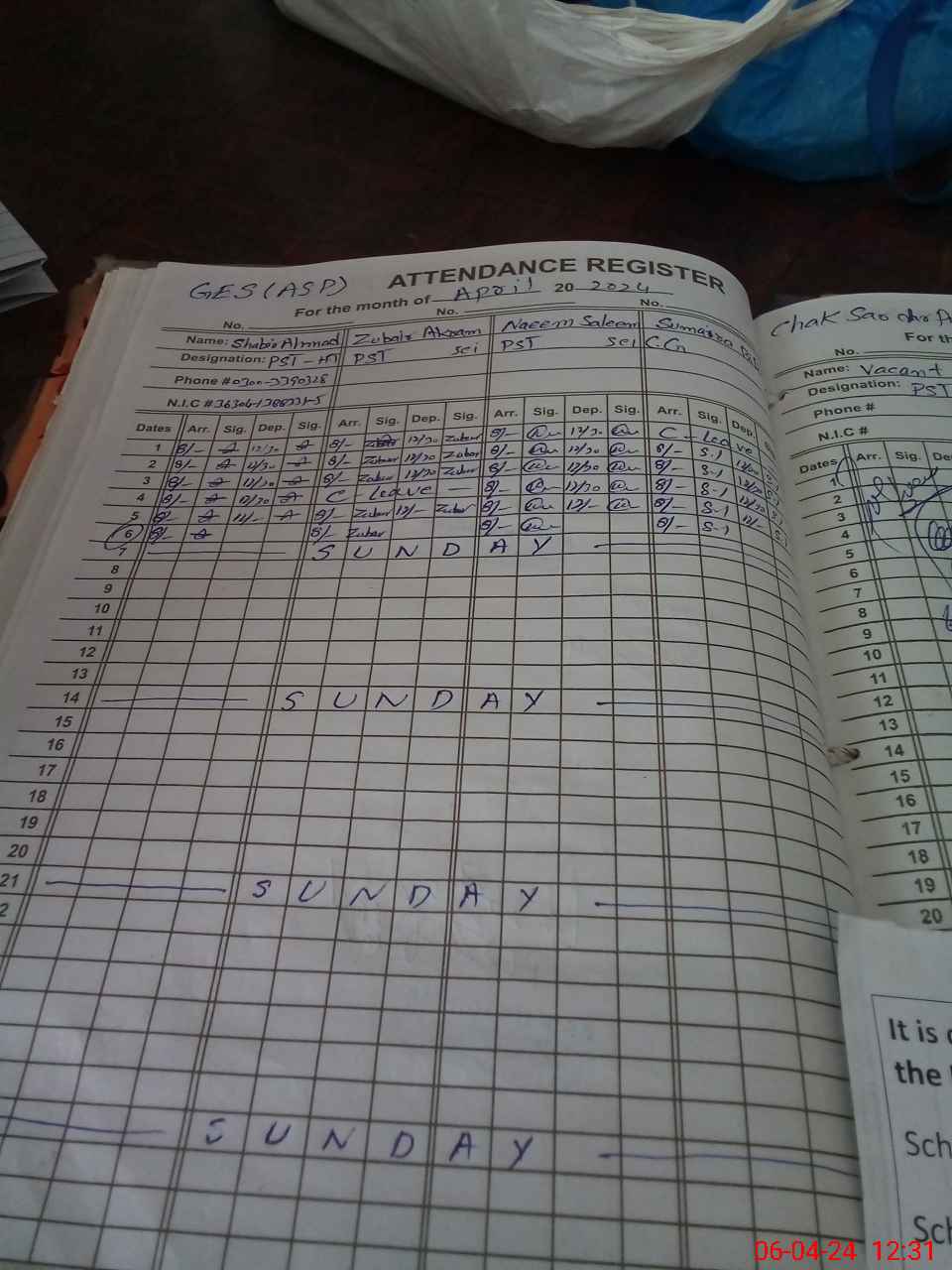 | Name: SH**** AH**** Designation: (School Headmaster's/Headmistress's) PST Phone/Cell Number: 03**** |