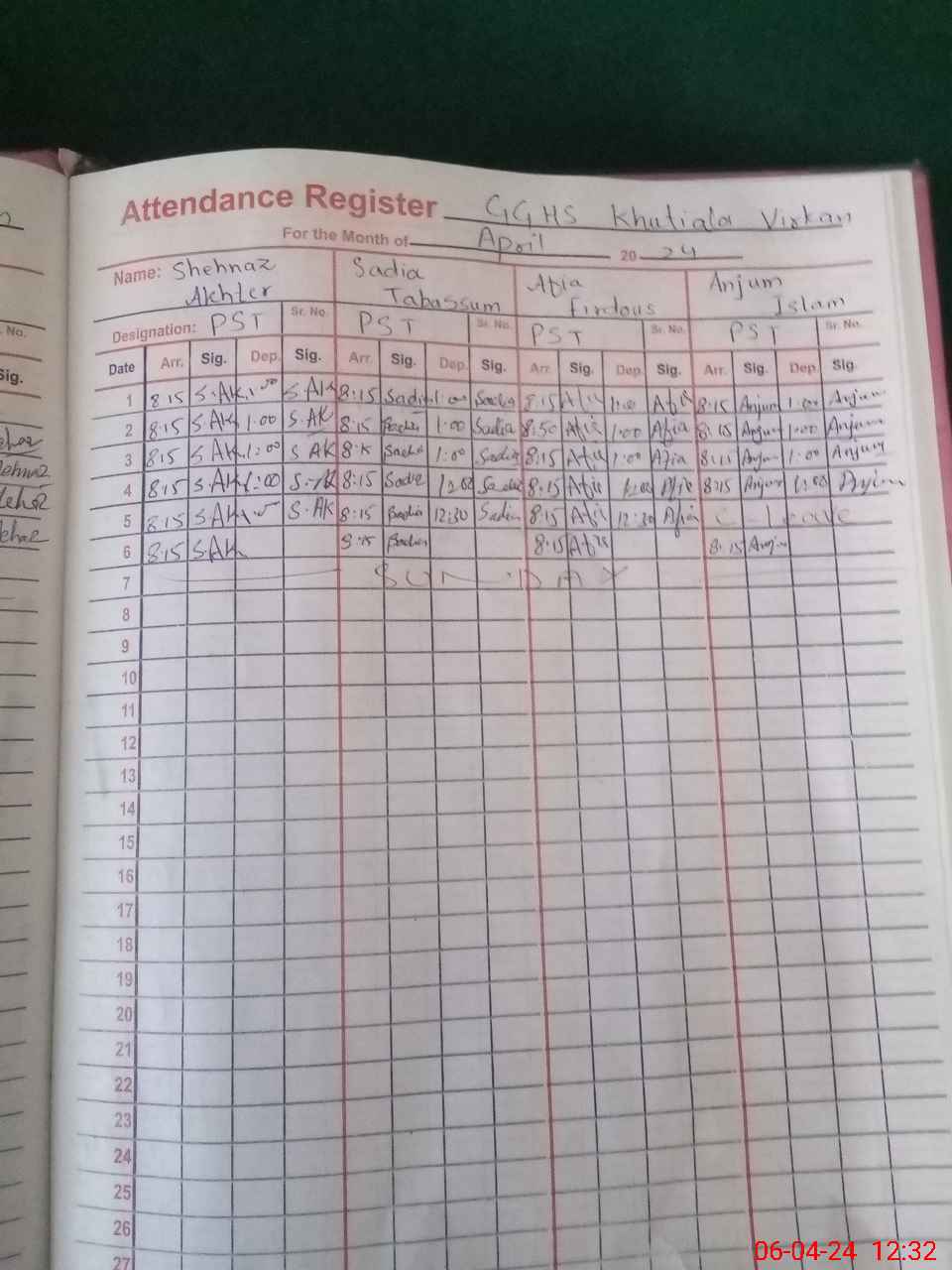| CNIC | Full Name | Designation | R/C | Absence During Last Calender Month |