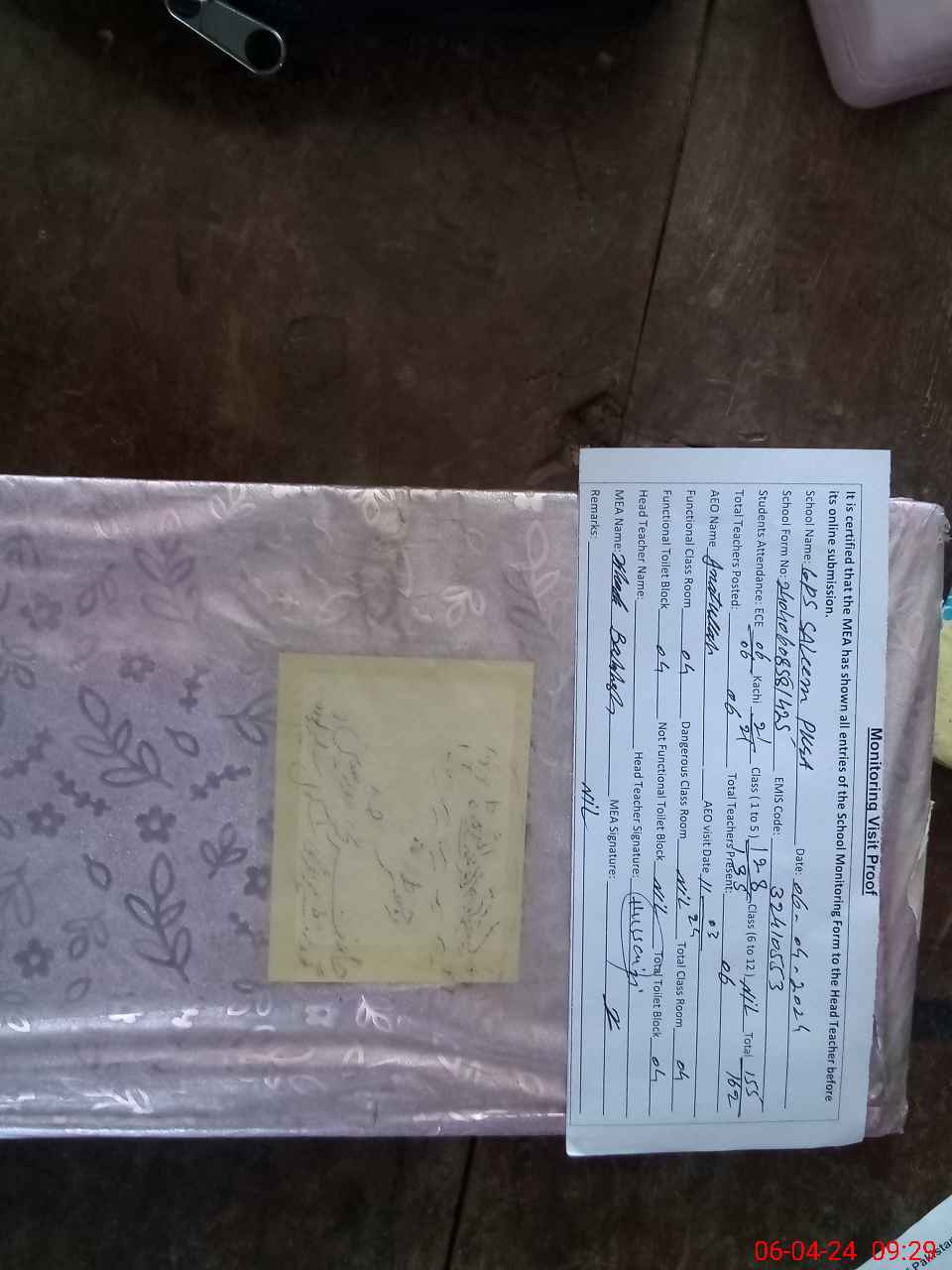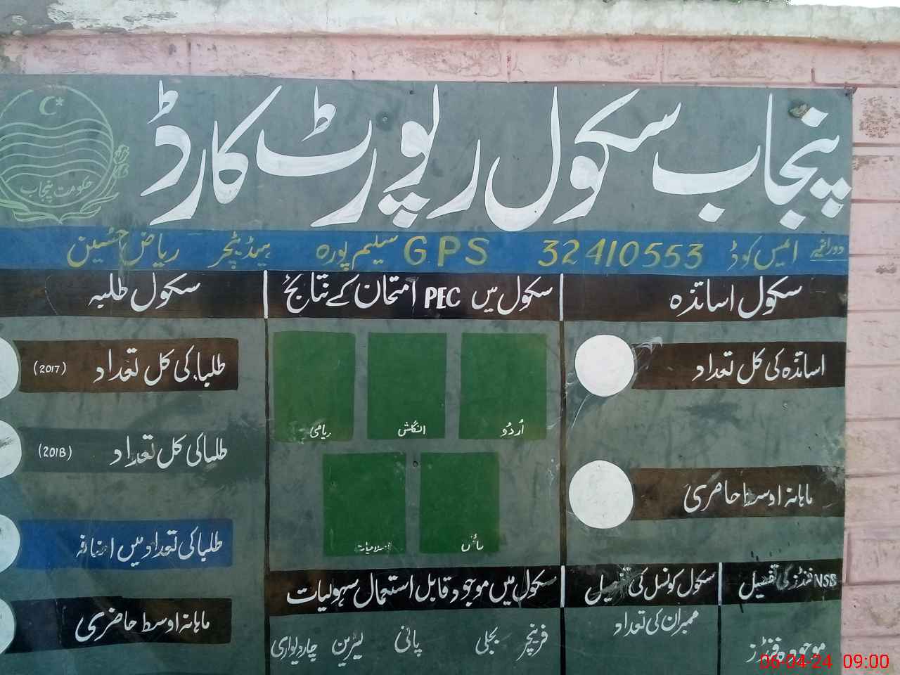 | EMIS Code: 32410553 | Name of School: GPS SALEEM PURA | |||