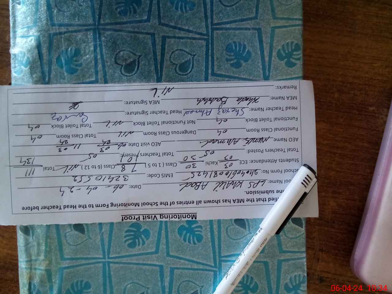 | EMIS Code: 32410552 | Name of School: GPS KHALIL ABAD | |||