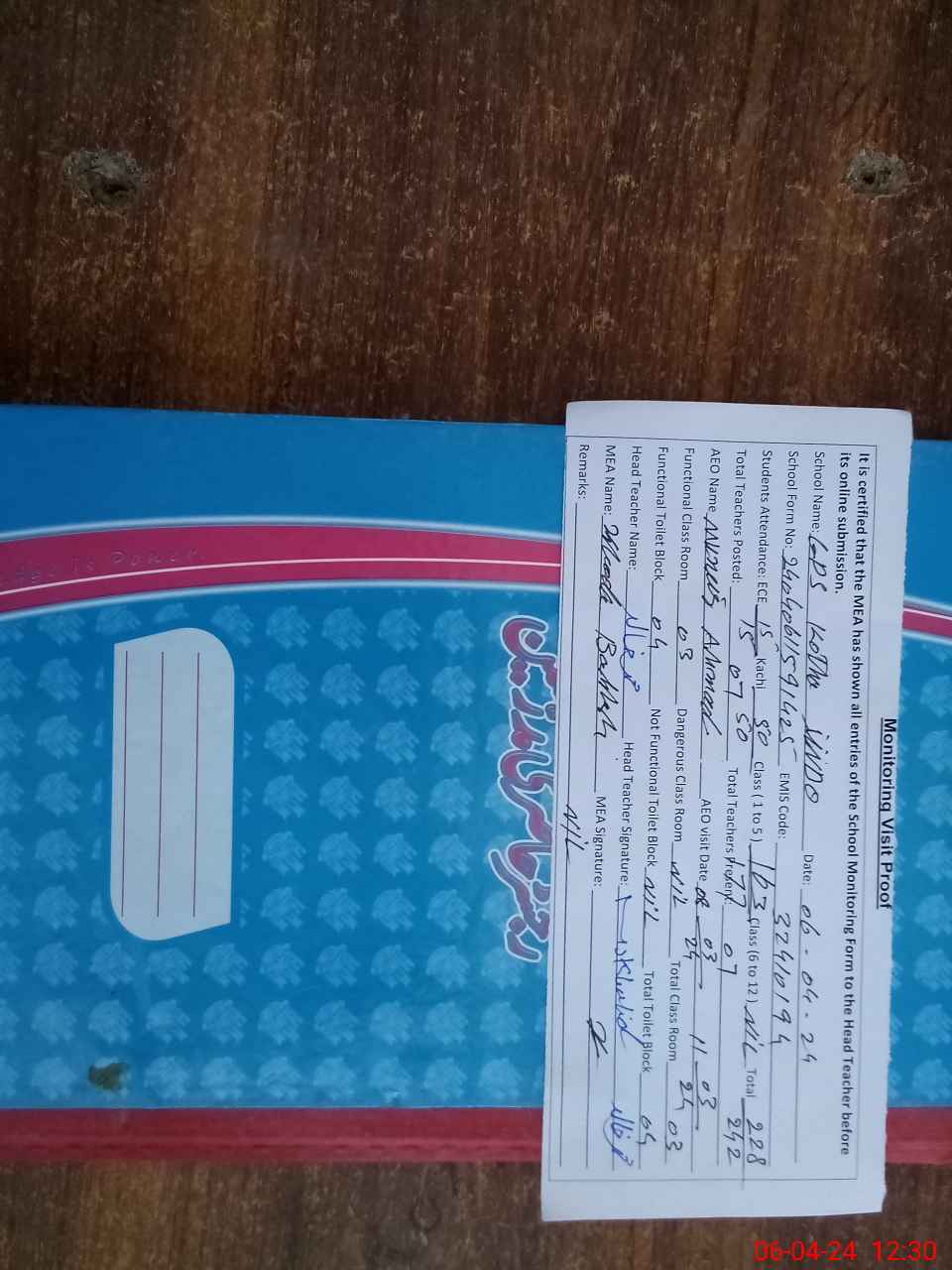 | EMIS Code: 32410194 | Name of School: GPS KOTHA JINDU P/O DAJAL | |||