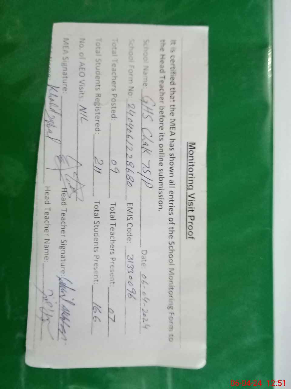 | EMIS Code: 31330096 | Name of School: GHS CHAK 75/P | |||