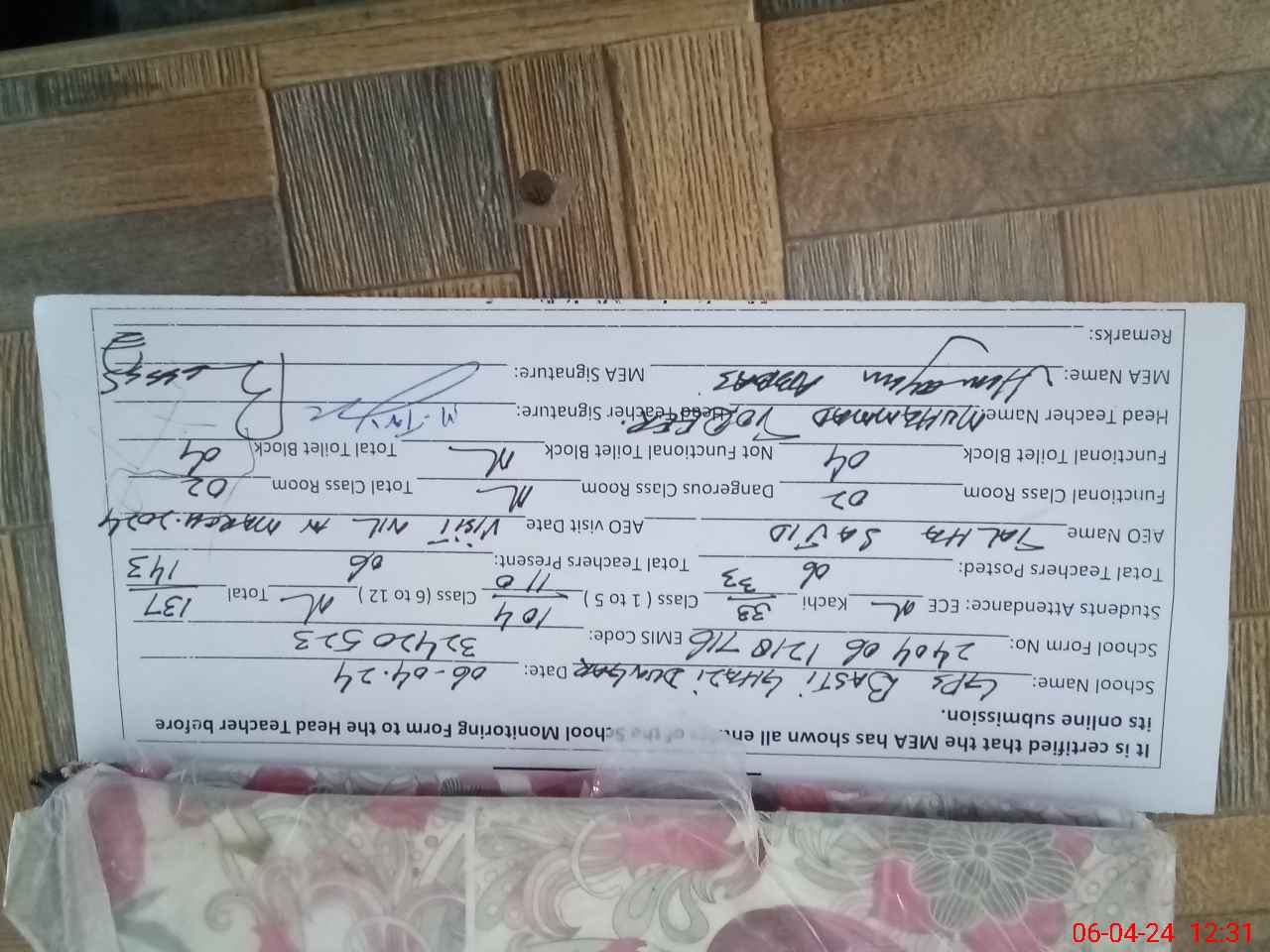 | Name: Mu**** TO**** Designation: (School Headmaster's/Headmistress's) IHead MASTER Phone/Cell Number: 03**** |