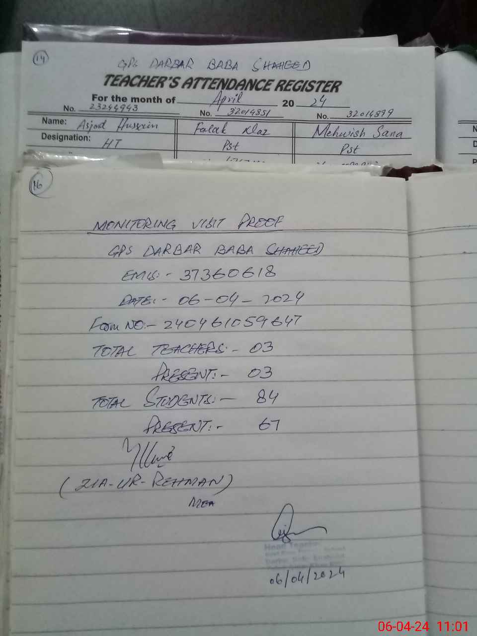 | EMIS Code: 37360618 | Name of School: GPS DERBAR BABA SHAHEED | |||