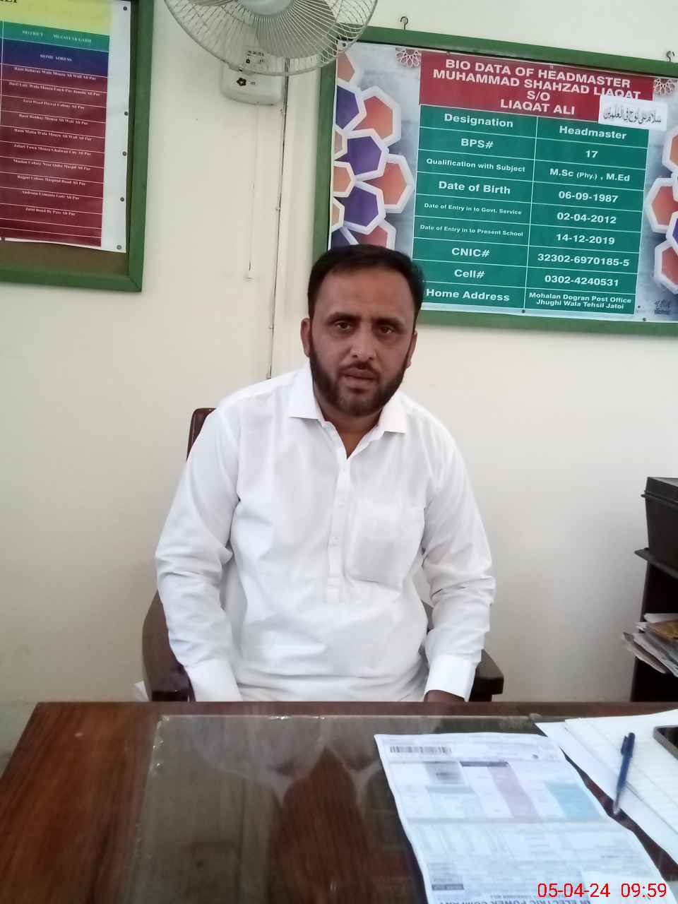 | Name: MU**** SH**** LI**** Designation: (School Headmaster's/Headmistress's) HM Phone/Cell Number: 03**** |