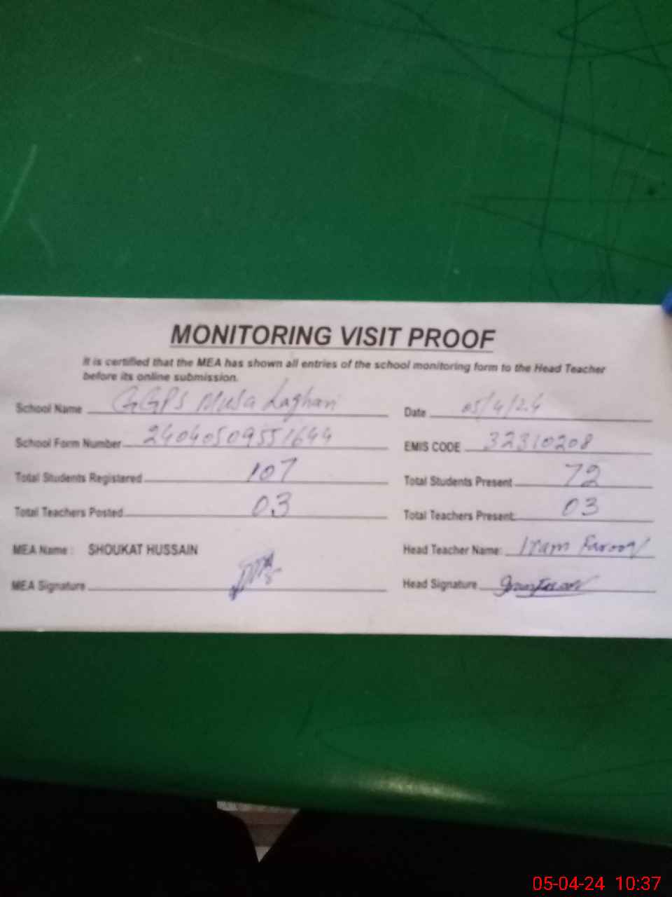 | EMIS Code: 32310208 | Name of School: GGPS MUSA LAGHARI | |||