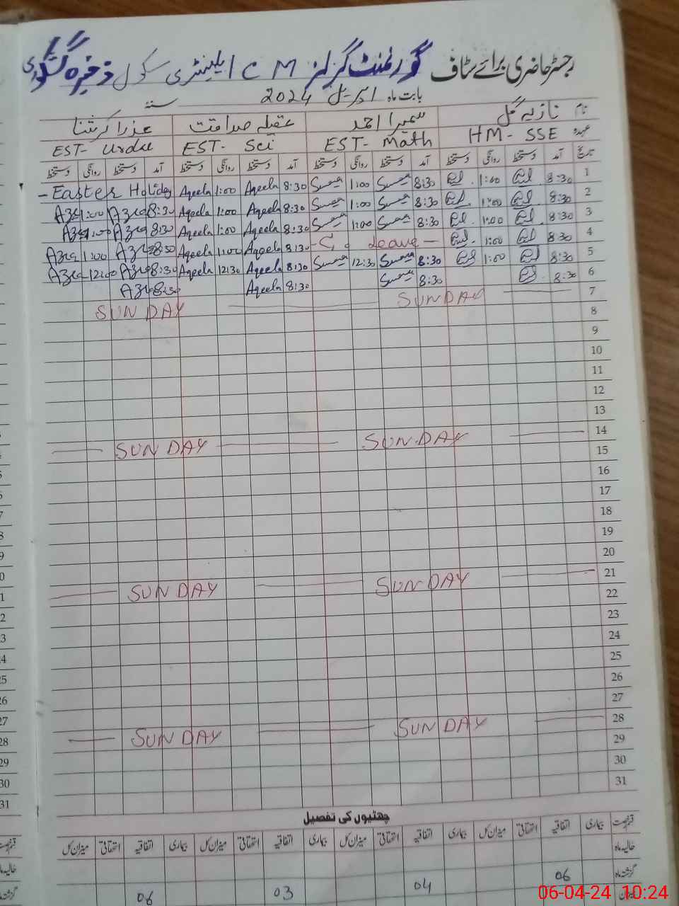 | CNIC | Full Name | Designation | R/C | Absence During Last Calender Month |