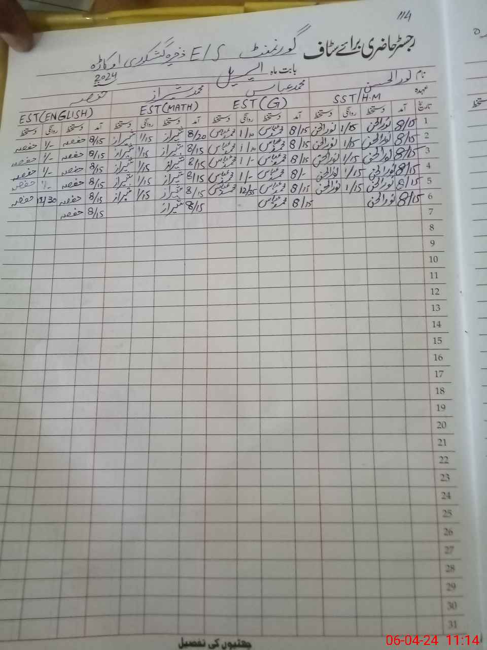 | CNIC | Full Name | Designation | R/C | Absence During Last Calender Month |