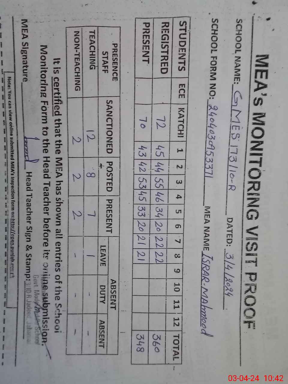 | EMIS Code: 36440544 | Name of School: GMES 173/10-R, JAHANIAN | |||