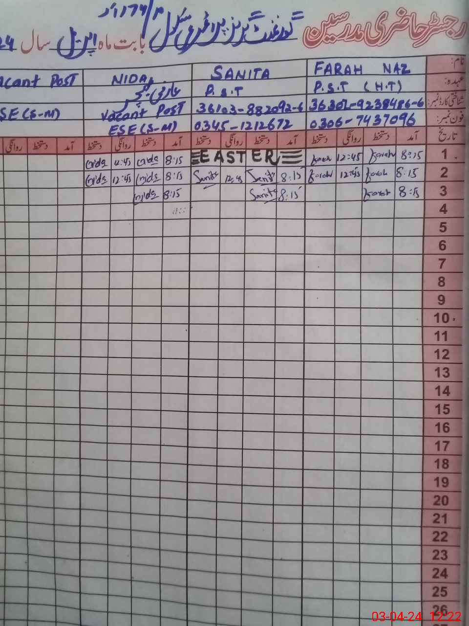 | Name: Fa**** Na**** Designation: (School Headmaster's/Headmistress's) Ese Sci Math Phone/Cell Number: 03**** |