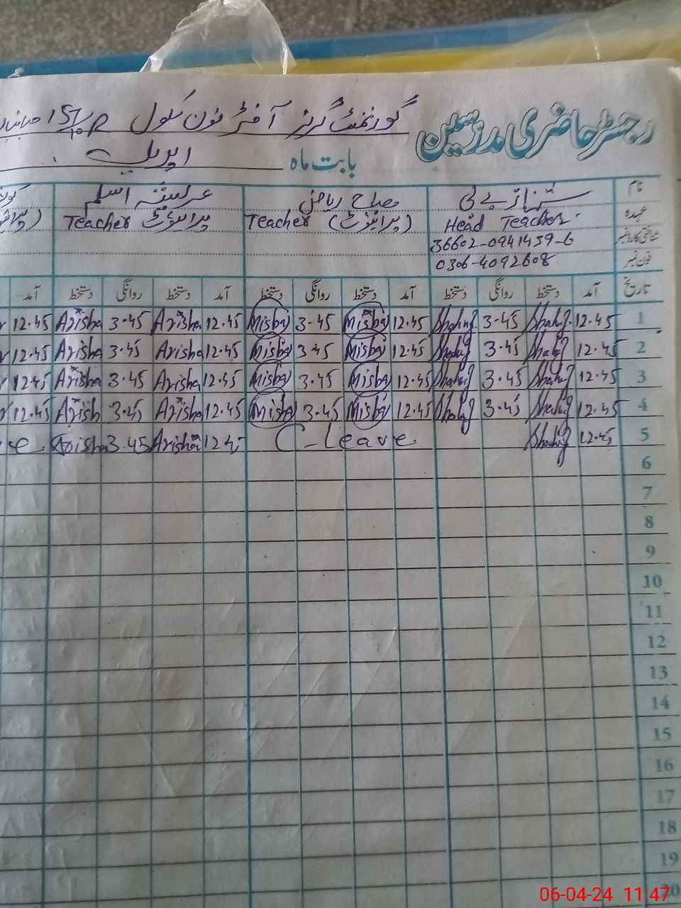 | Name: SH**** BA**** Designation: (School Headmaster's/Headmistress's) PST Phone/Cell Number: 03**** |