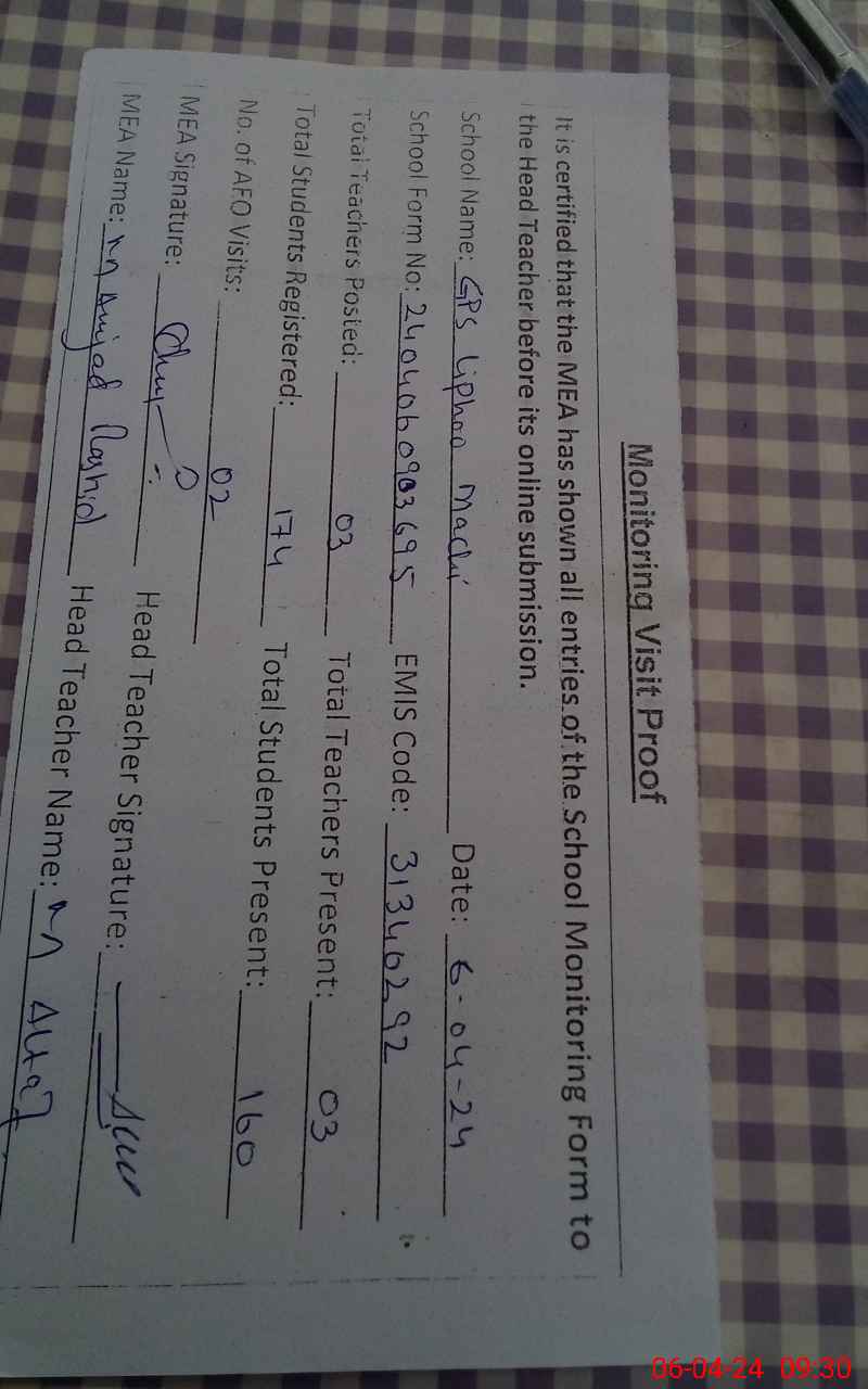 | EMIS Code: 31340292 | Name of School: GPS LIPHOO MACHI | |||