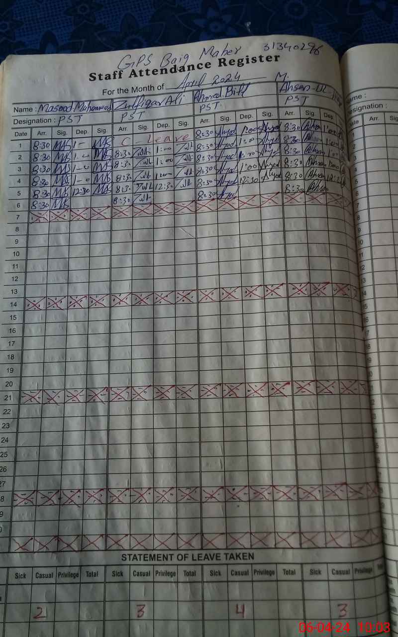 | Name: MA**** MU**** Designation: (School Headmaster's/Headmistress's) PST Phone/Cell Number: 03**** |