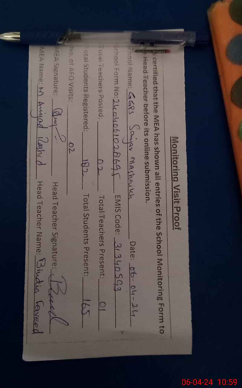 | EMIS Code: 31340593 | Name of School: GGPS SANJAR MASHAIEKH | |||