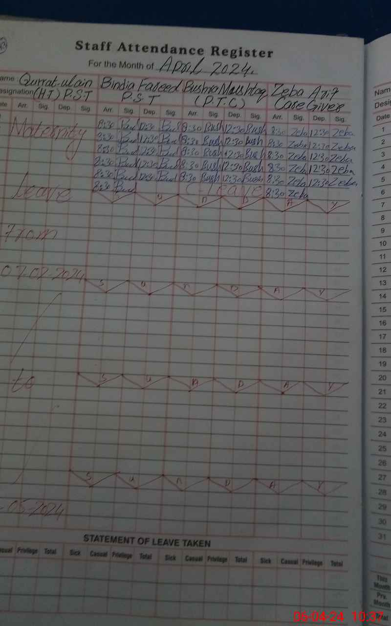 | Leave | Duty | Absent | Maternity | Medical | Ex- Pak |