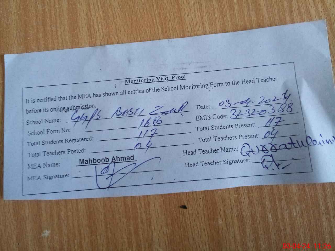 | EMIS Code: 32320388 | Name of School: GGPS BASTI ZOUR | |||