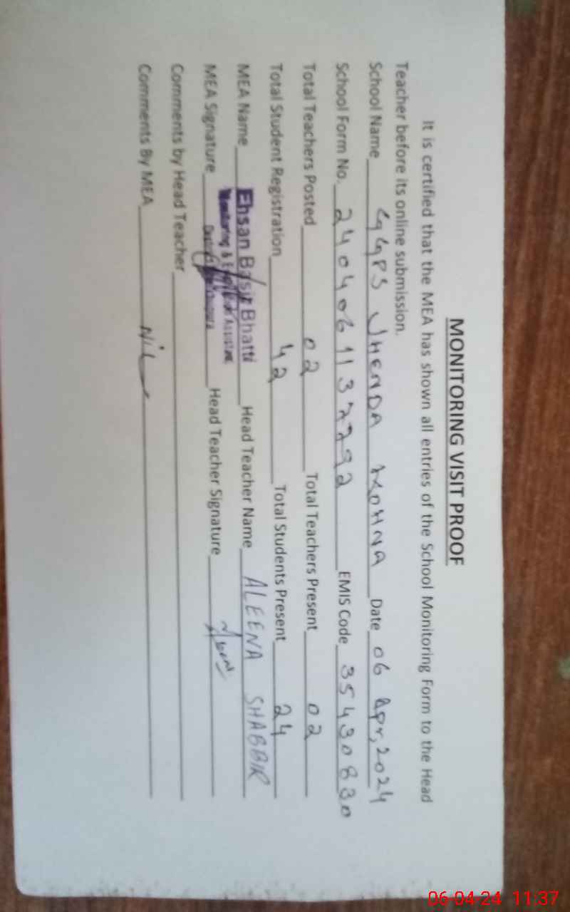 | EMIS Code: 35430830 | Name of School: GGPS JHENDA KOHNA | |||