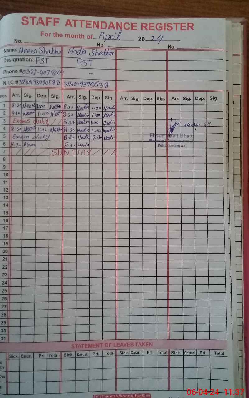 | Name: Al**** Sh**** Designation: (School Headmaster's/Headmistress's) ESE Sci-math Phone/Cell Number: 03**** |