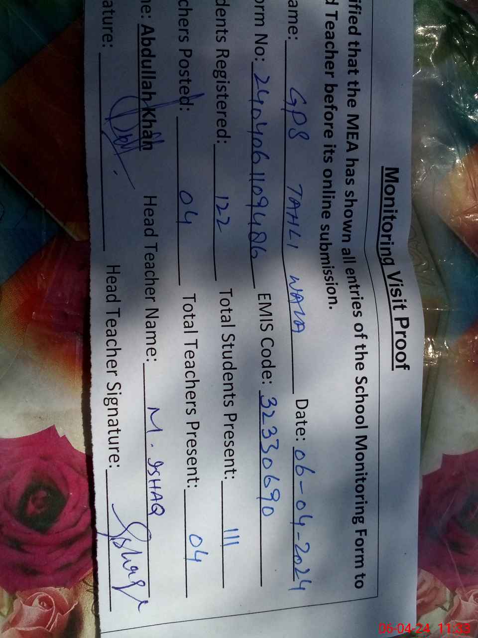 | EMIS Code: 32330690 | Name of School: GPS TAHLI WALI | |||