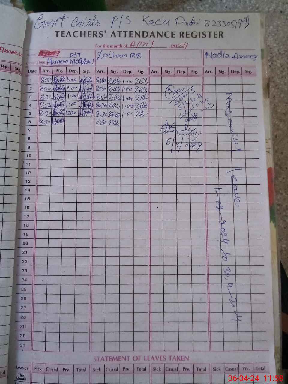 | 32**** | Na**** Am**** | Contract | 31 | 0 | 0 | 31 | 0 | 0 | 0 | 0 | 0 | Maternity | |