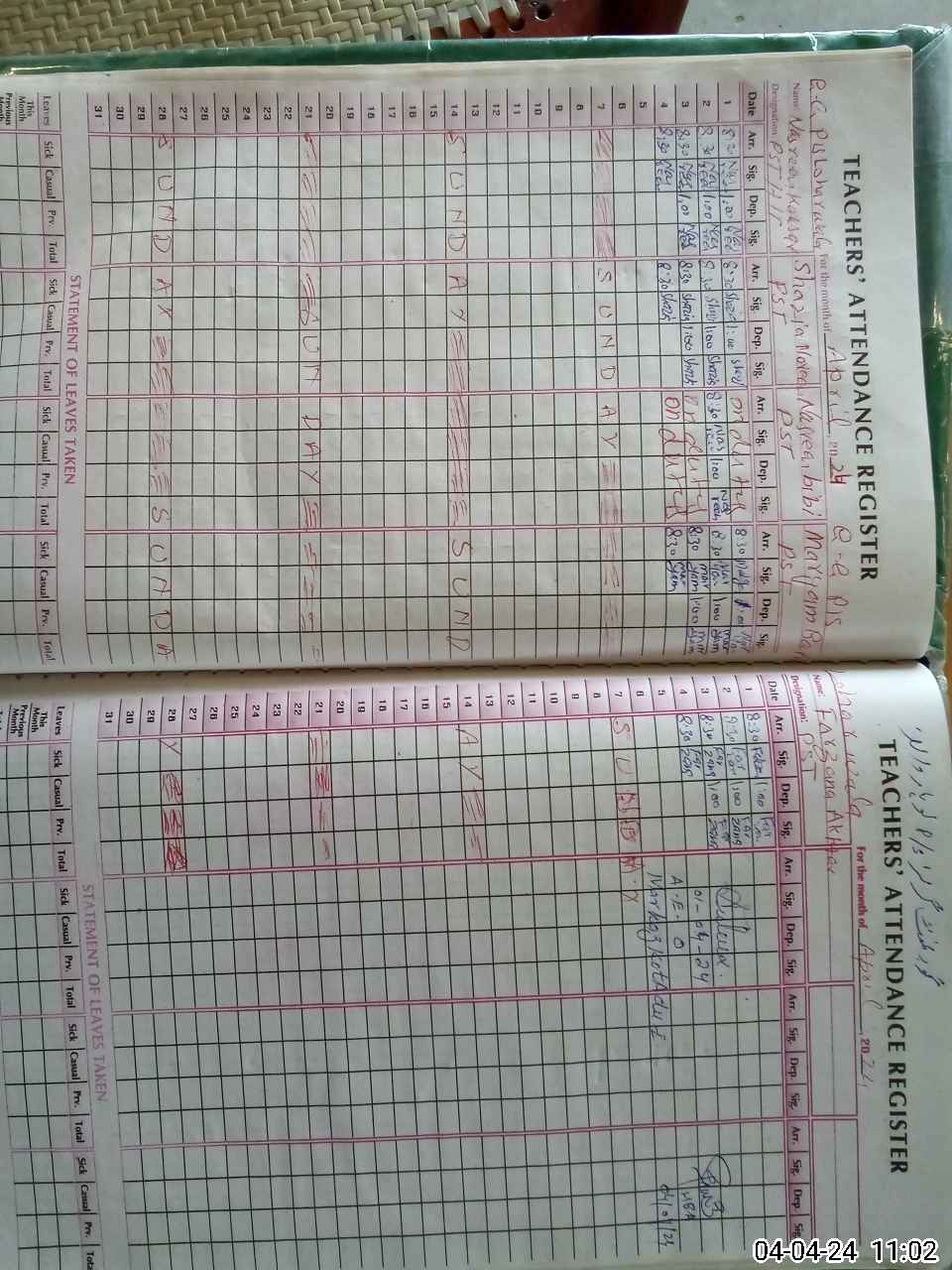 | 32**** | Na**** BiBi | 1 | 1 | 0 | 0 | 0 | 0 | 0 | 0 | 0 | 0 | 0 | Exam Duty |