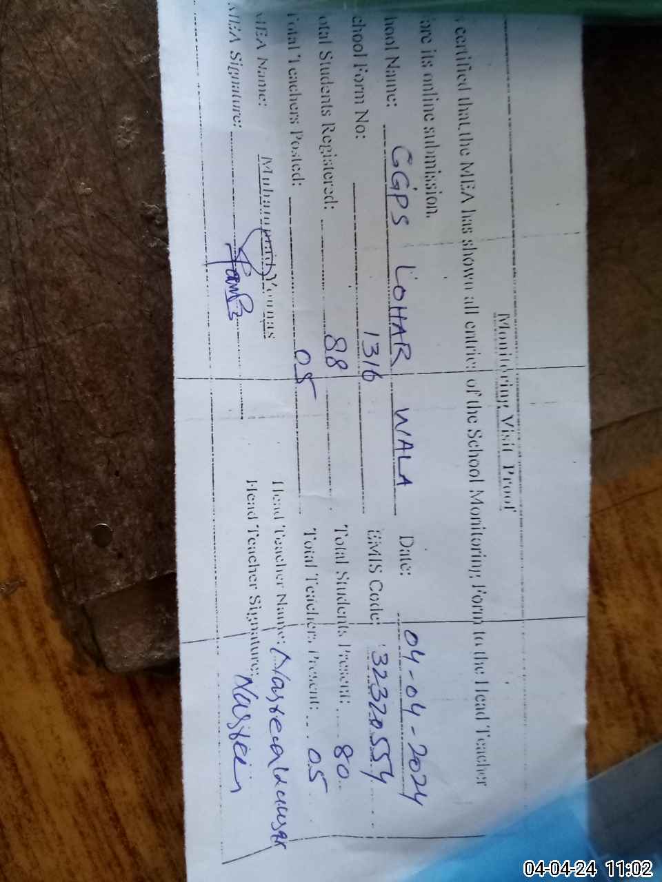 | EMIS Code: 32320554 | Name of School: GGPS LOHAR WALA | |||