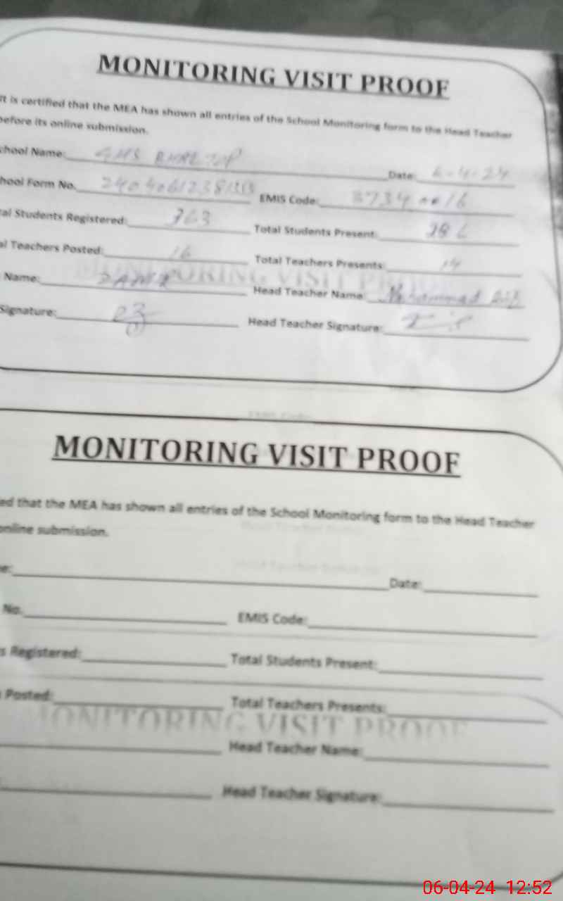 | Attendance Register | Head Teacher | MEA with School | Visit Proof |