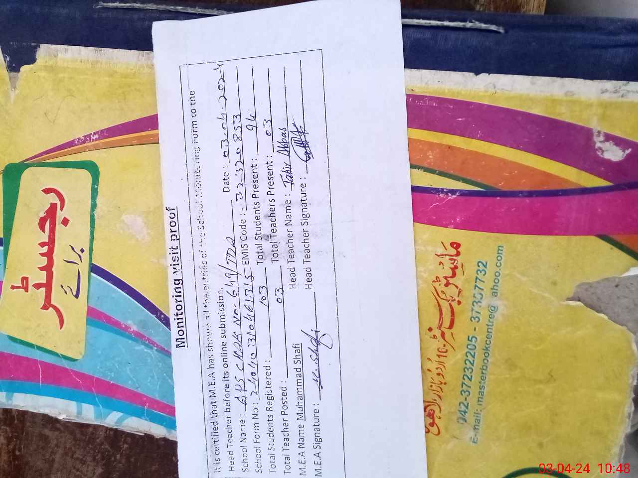 | Attendance Register | Head Teacher | MEA with School | Visit Proof |