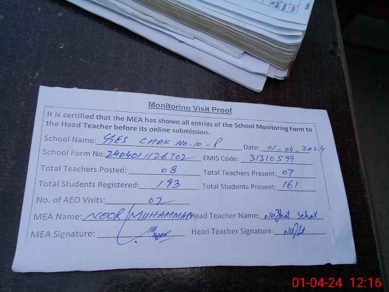 | EMIS Code: 31310599 | Name of School: GGES CHAK NO.10/P | |||